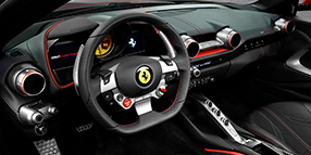 812 Superfastには最先端の車体制御システムと装置が搭載されています。極めて革新的なデザインによるエアロダイナミクス・パッケージが、比類ないハンドリング性能に貢献します。また、フェラーリとして初めてEPS(電動パワーステアリング)を搭載しました。